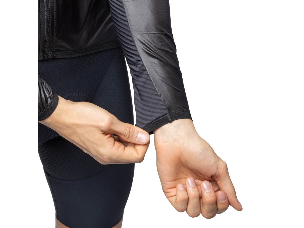 - Elastický silikónový pásik na spodnom leme aj rukávoch udrží bundu na správnom mieste.
