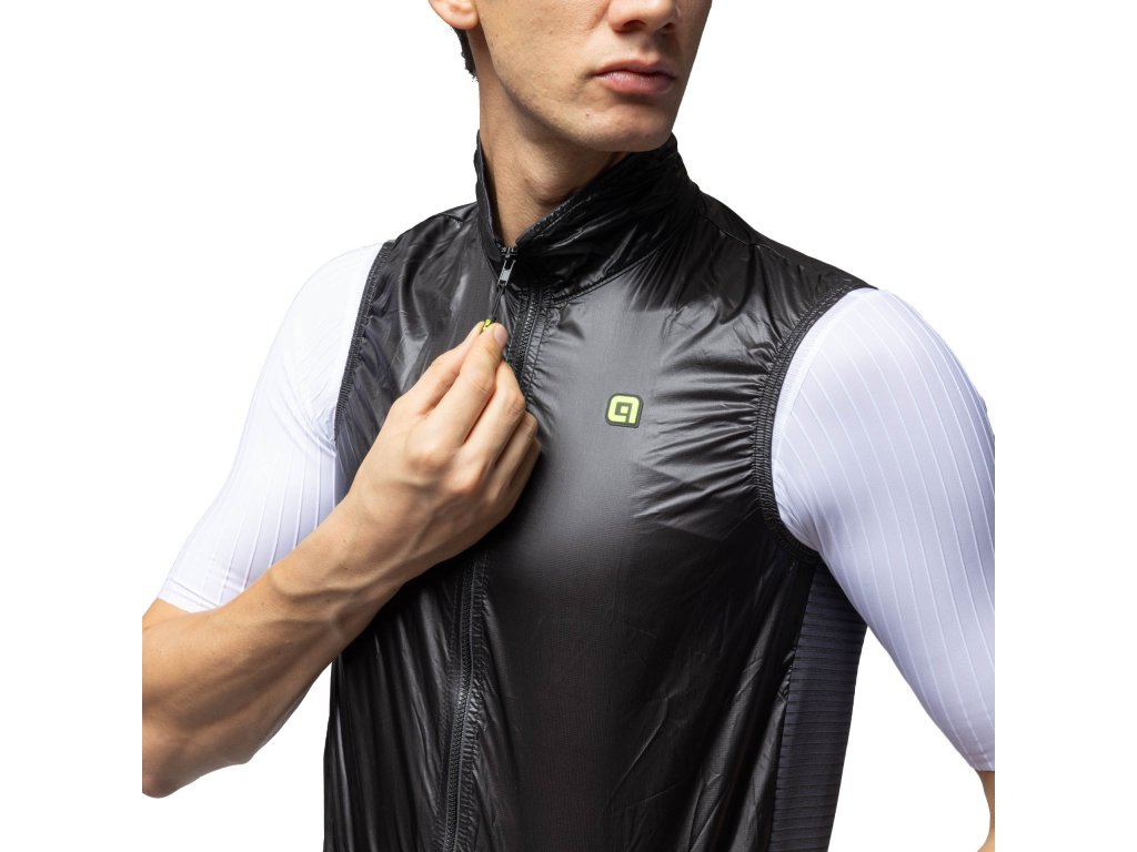 Alé GUSCIO LIGHT PACK 2.0 Vest, Black Pánska ľahká pláštenková vesta s DWR úpravou