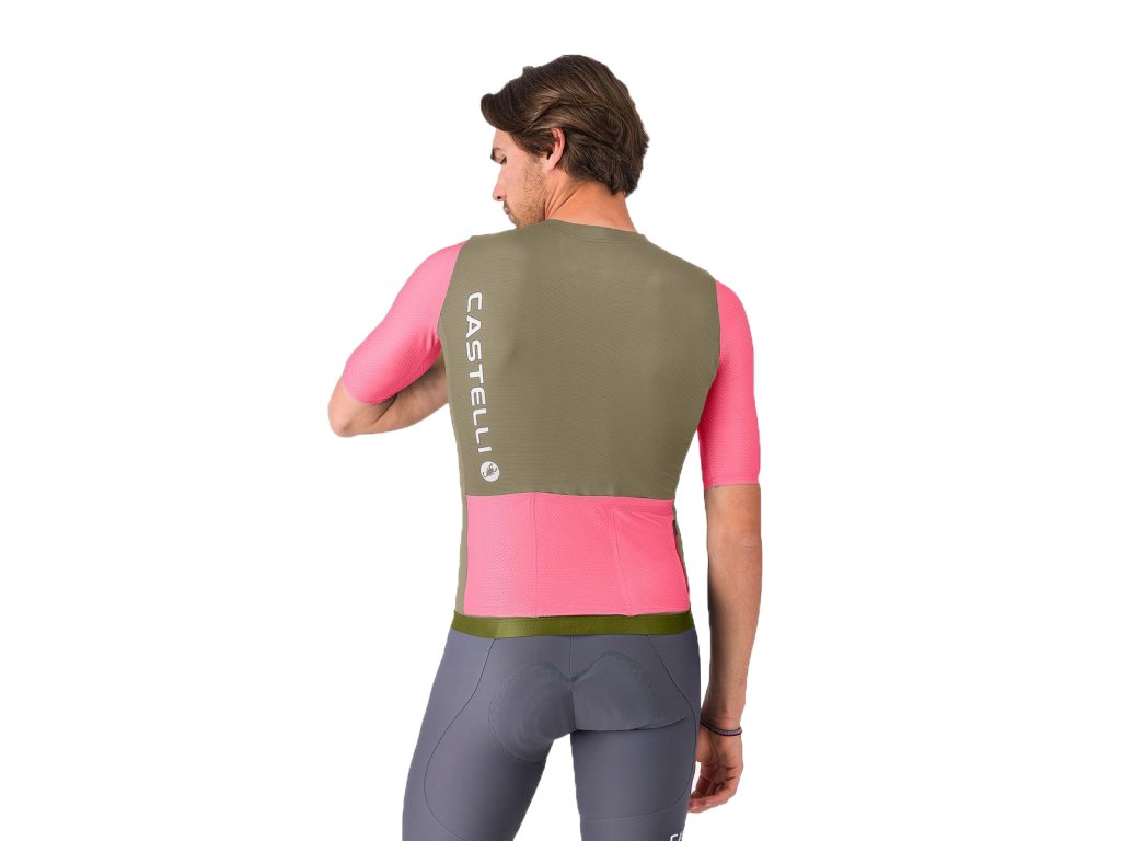 Castelli Corretto jersey, Elmwood/ Rosa giro-White Letný dres v pretekárskom užšom strihu