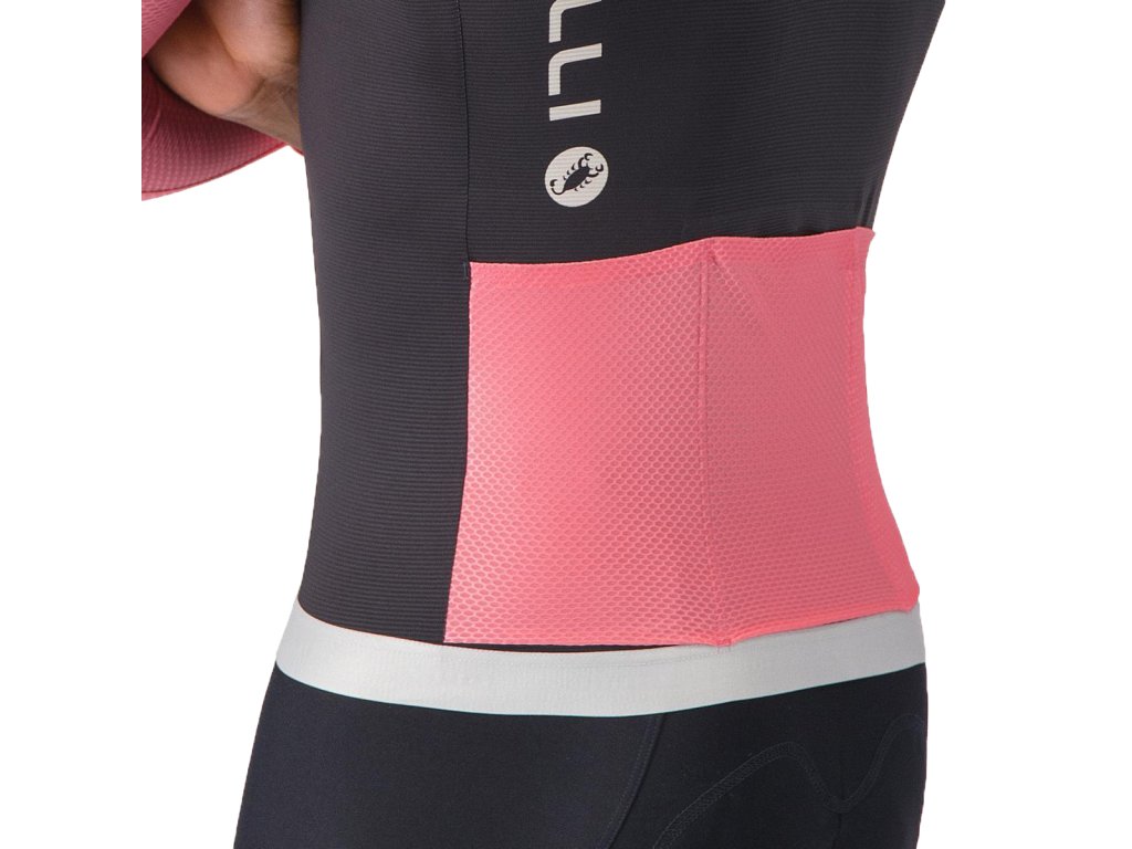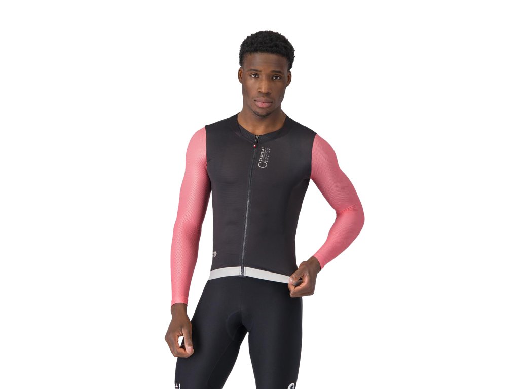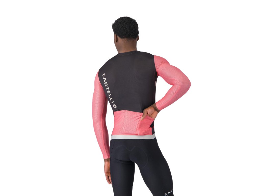 Castelli Corretto LS jersey, Black/ Rosa giro-Silver moon Letný cyklistický dlhorukávový obtiahnutejší dres