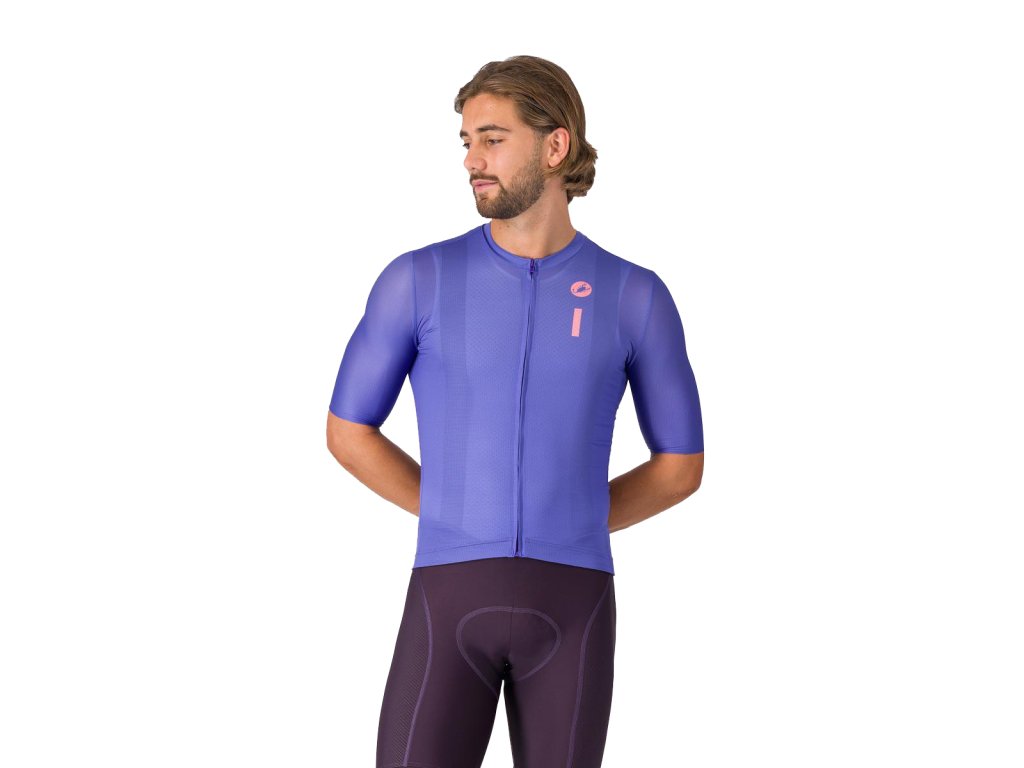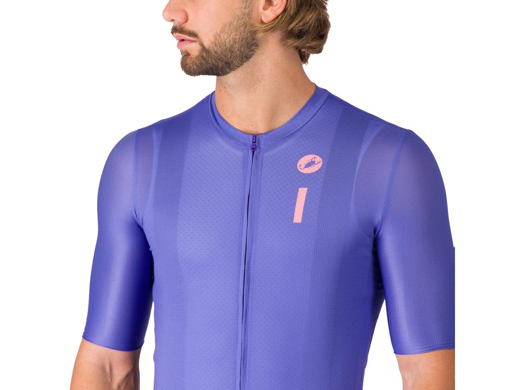 Castelli Drittone Logo jersey, Ultraviolet/ Rosa giro Dres dizajnovaný pre celodenný komfort na bicykli