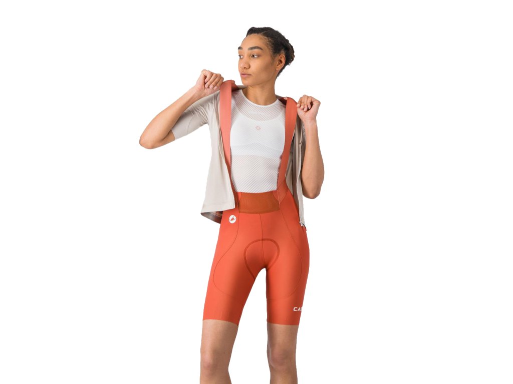 Castelli Espresso 2 W DT bibshort, Paprika Obľubený model dámskych cyklo nohavíc so strečovými trakmi