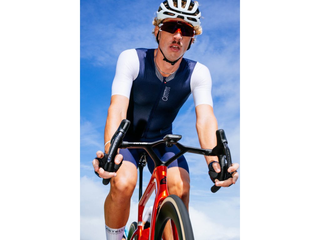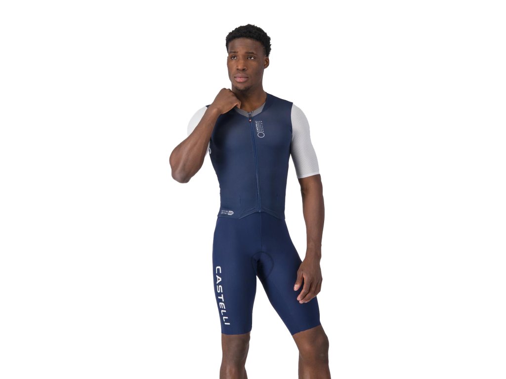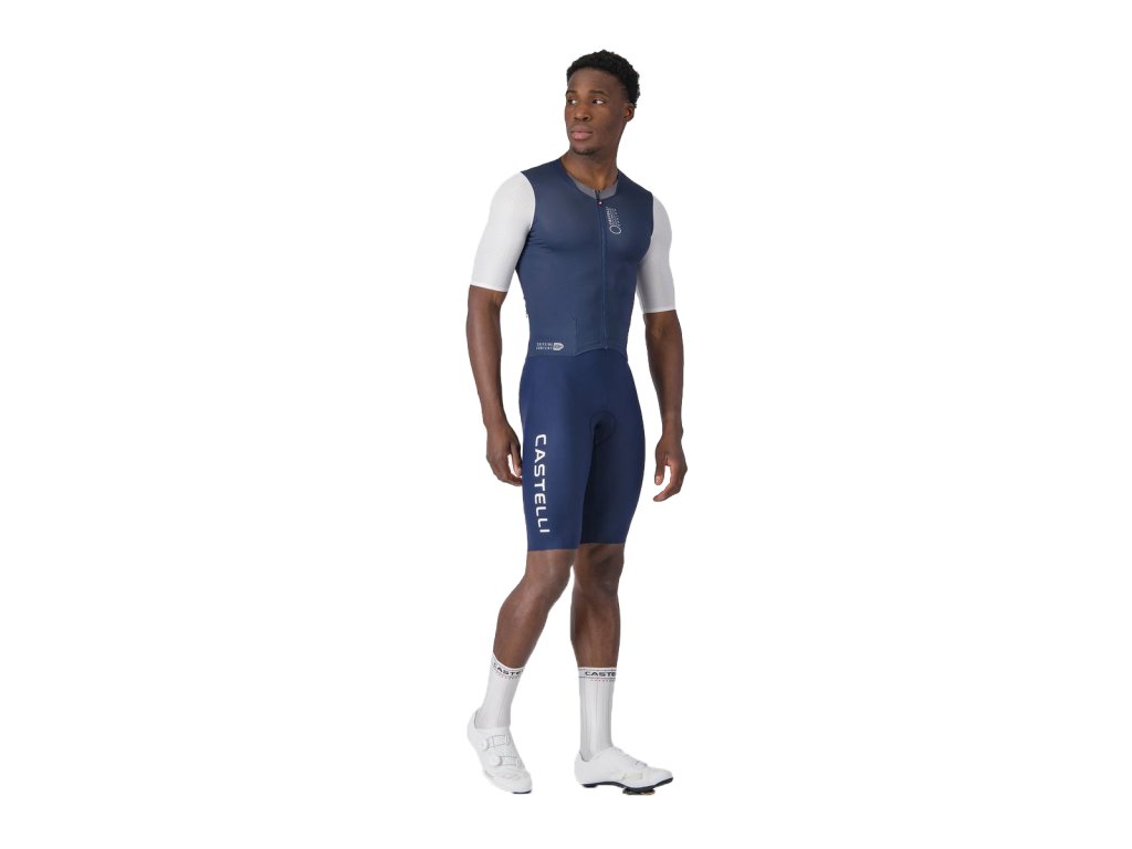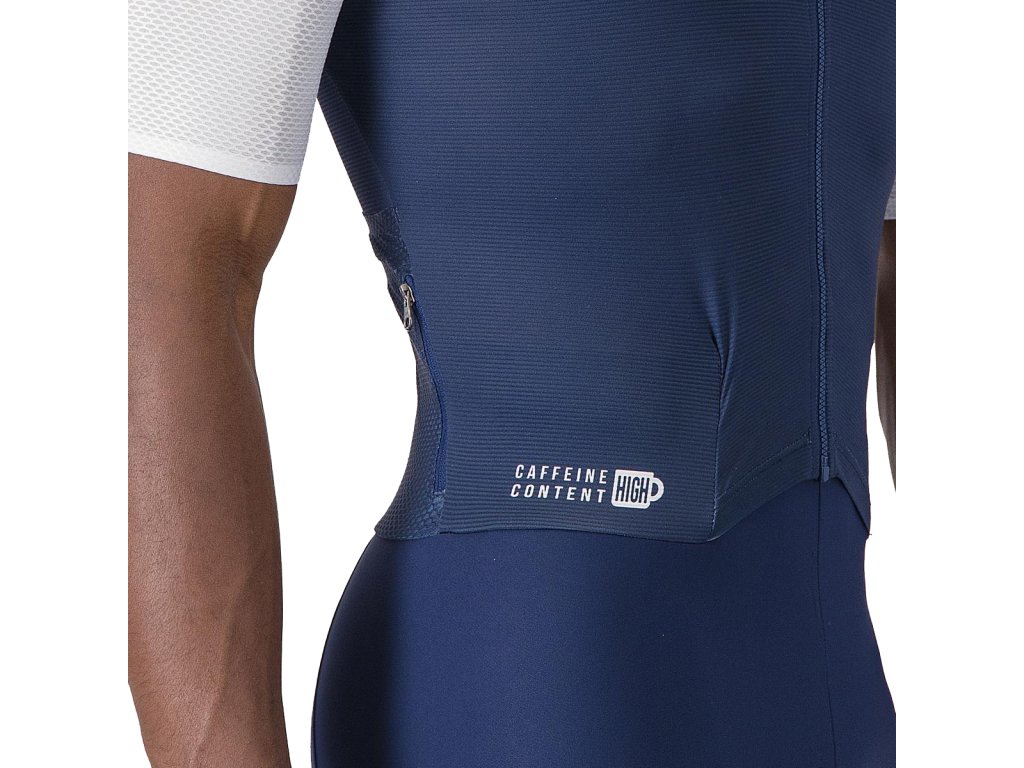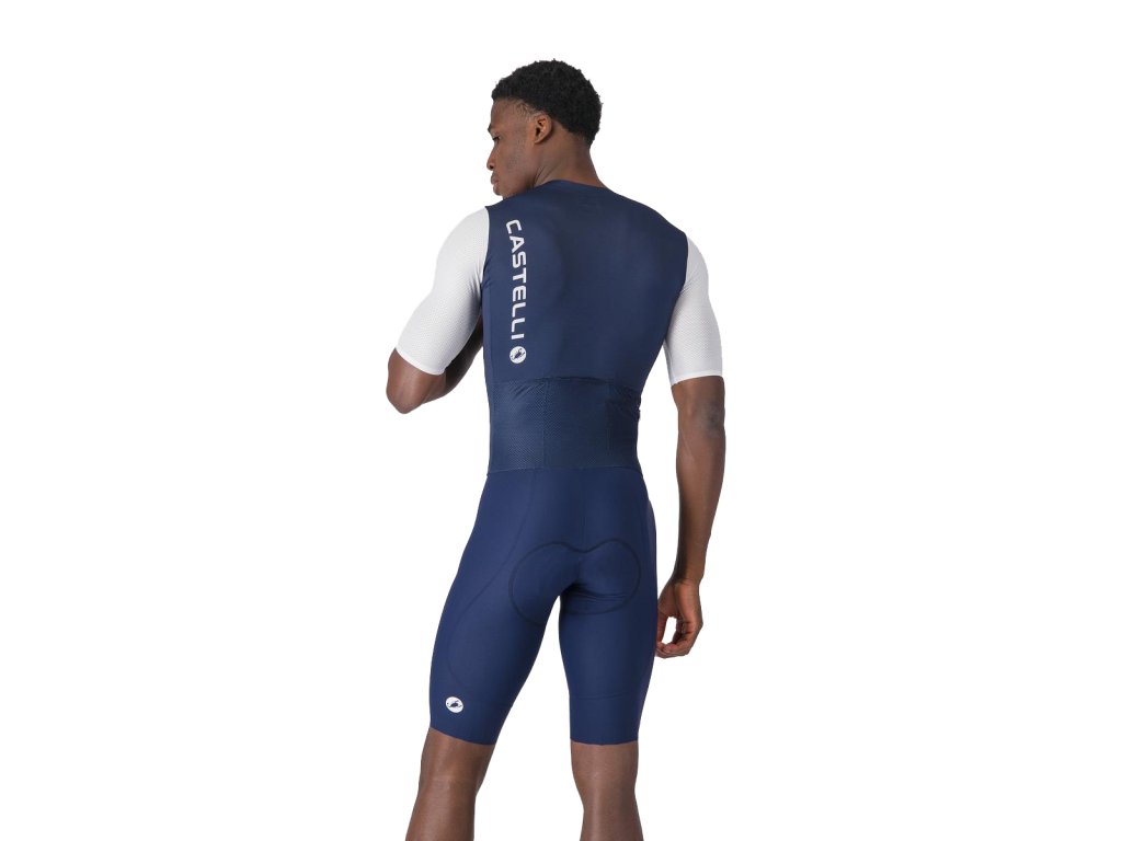 Castelli Saturday Morning skinsuit, Belgian blue/ White Dizajnová cyklokombinéza s možnosťou pripnutia štartovacieho čísla