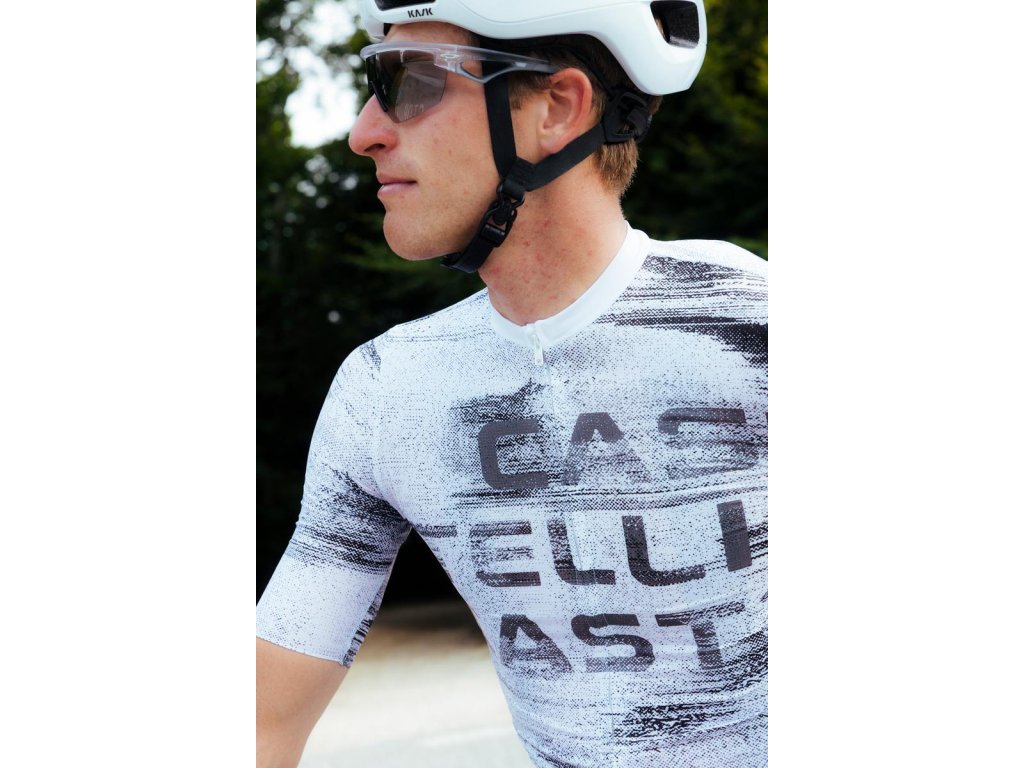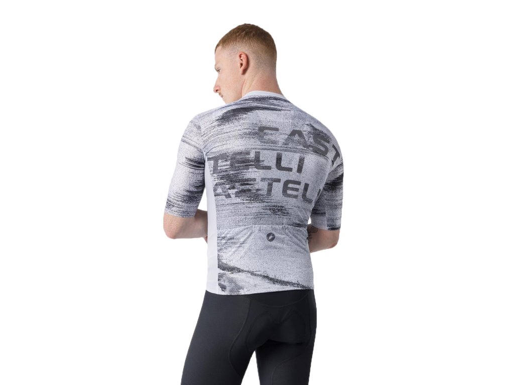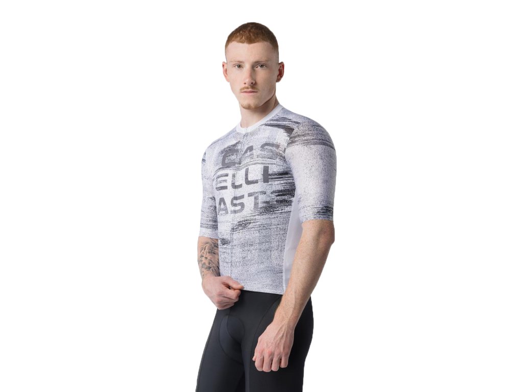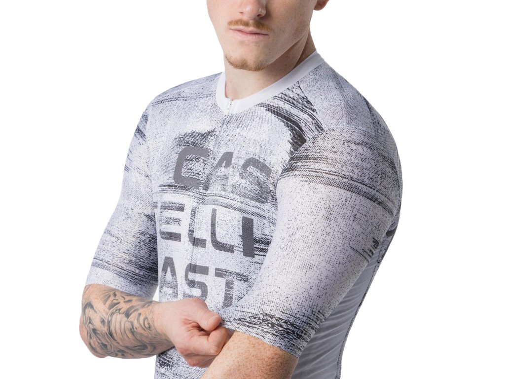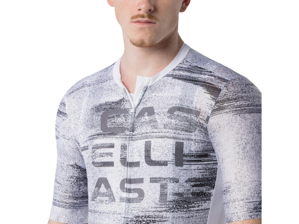 Castelli Stratus Logo jersey, White/ Smoky gray Letný cyklistický dres v grafickom dizajne castelli