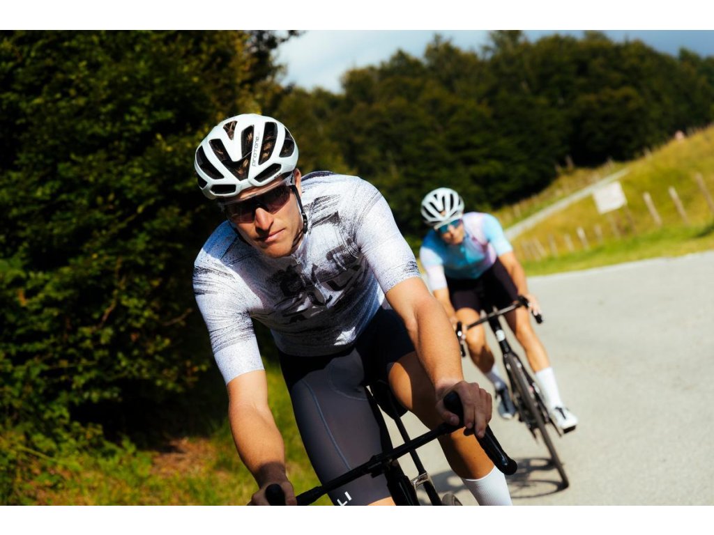 Dres Stratus Logo je pomenovaný podľa vysokých, rýchlo sa pohybujúcich oblakov, ktoré sa rozprestierajú naprieč oblohou a sú symbolom pohybu. Rozmazané logo nie je chybou – je to vyhlásenie. Vizuálne echo jazdca v pohybe, ktorého sotva zazriete, keď okolo vás prefrčí. Vyrobený z ľahkých aerodynamických materiálov s priliehavým strihom – dres Stratus Logo je pre jazdcov, ktorí jazdia s nejakým úmyslom. Jemnosť na dotyk a funkčnosť materiálu zabezpečia pohodlie aj keď sa tempo zvýši, zatiaľ čo minimalistické detaily uchovávajú čistý a efektívny dizajn. Pretože rýchlosť, nie je len o wattoch – občas je aj o tom, ako sa na ceste pohybujete.