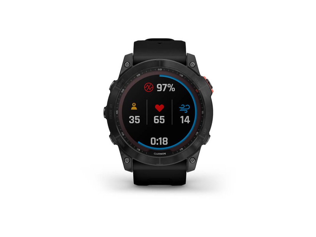 fenix® 7X Pro – Sapphire Solar sú prémiové multišportové GPS hodinky pripravené podávať výkon po celý deň. Vydrží vám až 37 dní v prevádzke vďaka solárnemu dobíjaciemu sklíčku Power Sapphire™. Pokročilé tréningové funkcie, nepretržité sledovanie zdravia a integrované svietidlo LED vám pomôžu prekonávať vlastné limity.