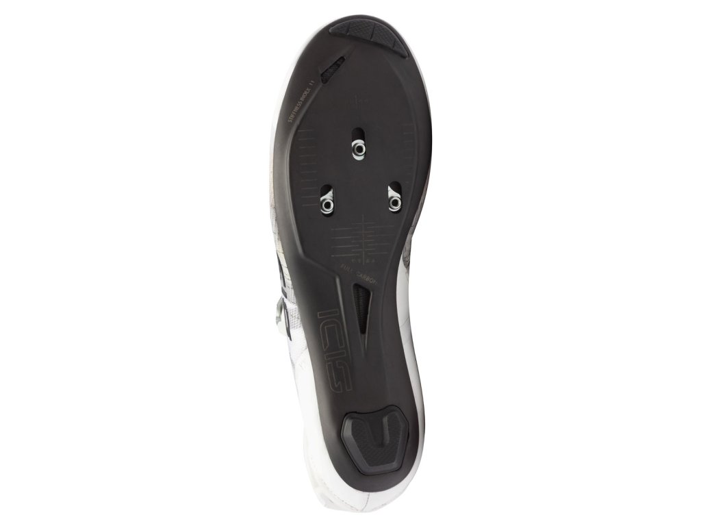Celokarbónová podrážka s maximálnou tuhosťou (11) a inovatívnym systémom Airflow s integrovanými kanálikmi pre cirkuláciu vzduchu. Priľnavé plastové vložky v oblasti špičky a päty zaisťujú lepší kontakt so zemou a stabilitu pri behu a vložka v päte je vymeniteľná. Jednodielna pedálová doska zaisťuje optimálnu priľnavosť a čo najlepší výkon na pedáli.