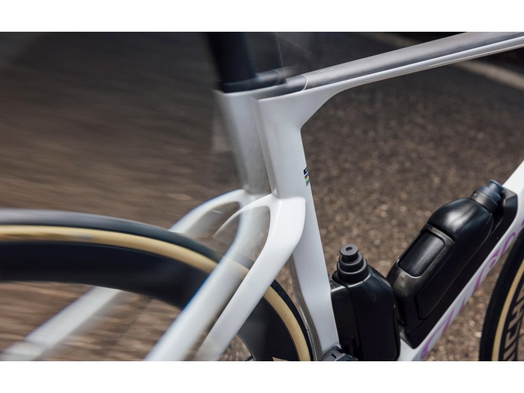 Spodná rámová trubka, ktorá bola z hľadiska dizajnu vždy jednou z najzložitejších oblastí, bola vyvinutá s presným cieľom: minimalizovať aerodynamický odpor a čo najviac znížiť vystavenie fliaš na vodu vetru.